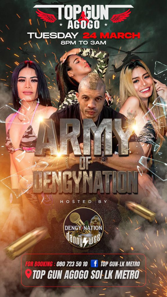 Enter the man from Dengy Nation. His sound, already making waves across Pattaya’s nightlife circuit, has found a natural home at Top Gun. With a growing reputation and a calendar filling with regular bookings, he’s quickly becoming one of the most talked-about names on the local scene.